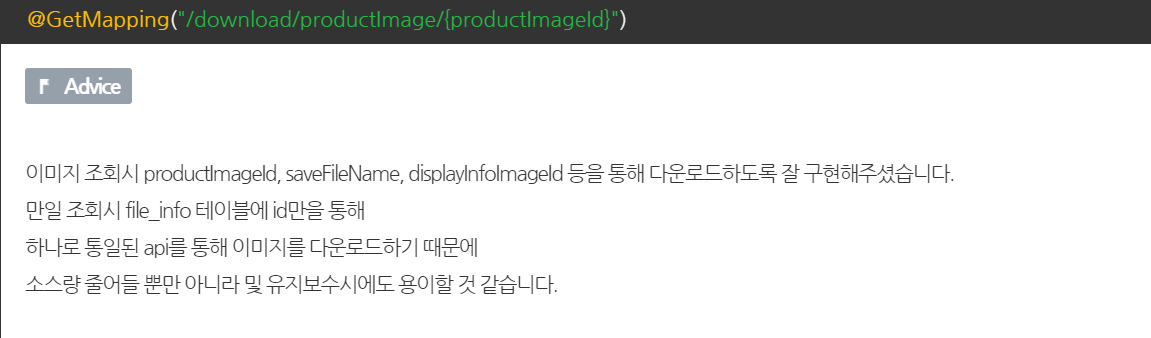 사실 이 부분은 내 생각대로 한 번 짜본거라서 리뷰어님의 의견이 궁금했었는데 역시 리뷰를 해주셨다. 리뷰어님 좋은 팁 감사합니다 ..!