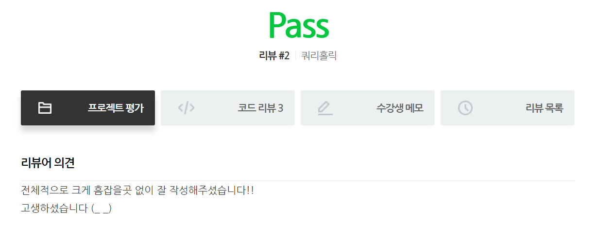 두번째로 PASS 를 하였는데, 처음에 제출했던 과제에서는 BE, 말그대로 백엔드 부분만 제출하는 줄 알고 기능적인 부분을 구현하지 않고 제출하였다... 평가기준표를 제대로 보지 않은 내 잘못이다 ㅠㅡㅜ
